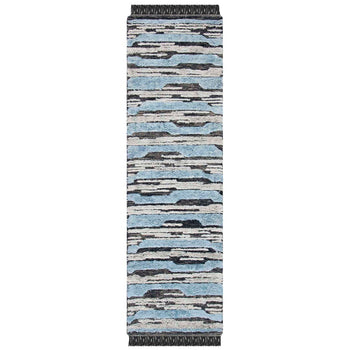 Enhance your space with the contemporary charm of our hand-tufted area rug, sized 2'-3" X 8' and crafted for modern elegance. This exquisite runner features a tasteful charcoal and blue color palette, bringing a touch of sophistication to any hallway or long narrow space in your home.