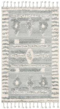 The design of the rug, with its picturesque patterns, emanates an organic charm that is both timeless and contemporary. Its abstract imagery, emphasized by the varying pile heights and texture in the grey and ivory palette, brings to life a sense of artistic impression that complements any modern or traditional decor.