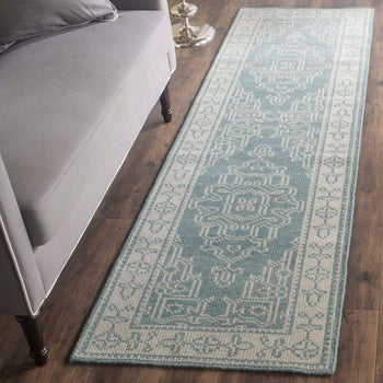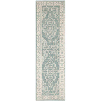Harmoniously balancing the warmth of ivory with serene shades of blue, this rug's palette introduces a calm yet inviting ambiance to any d?cor. Every weave reflects the meticulous attention to detail and the high-quality materials sourced from the heart of India.