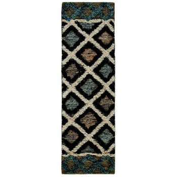 The rug's contemporary style, underscored by its modern color palette and bold design, makes it an immediate statement piece. From the intricate trellis patterns to the textured accents, the rug exudes a sense of depth and dimension that is sure to draw the eye and complement your existing decor.