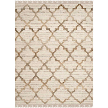 The natural color palette of this rug exudes an organic and serene atmosphere, seamlessly blending with your existing decor while providing a subtle yet captivating foundation. The timeless rug pattern displayed in the image features an intricate lattice design with earthy and neutral tones that evoke a sense of balance and sophistication.