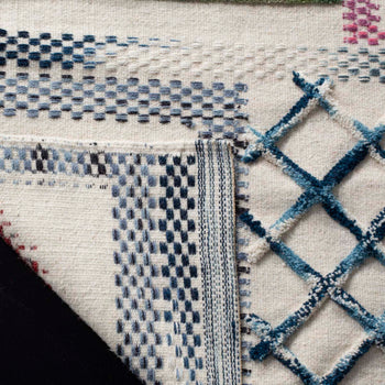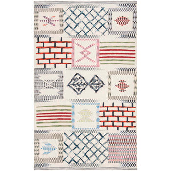 The rug's compelling ivory base is brilliantly accented with a diverse multi-color pattern, which is a testament to the skilled craftsmanship and intricate designs typical of the region. The delightful array of geometric and tribal motifs offers a vibrant yet sophisticated look, allowing the rug to stand out as a statement piece in any room.