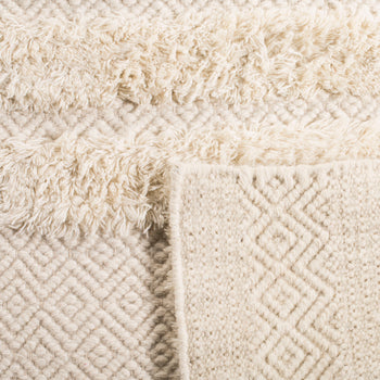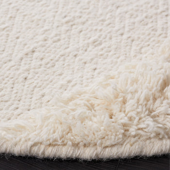 The ivory color serves as a versatile backdrop for any room, setting a tone of understated elegance. The rug features a delicate pattern of alternating textures and geometric motifs that imbue it with a sense of depth and character. The artful arrangement of raised and recessed areas creates a tactile dimension that invites touch, while its serene palette complements a variety of decor schemes.