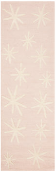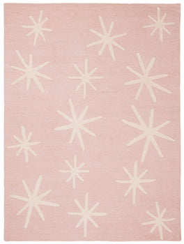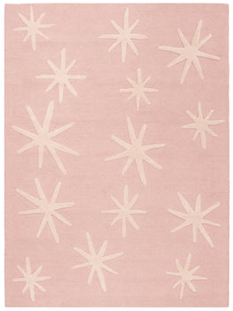 Hand-tufted by skilled artisans in India, this rug showcases exceptional craftsmanship and quality. Made entirely of wool, it offers both durability and comfort underfoot. The charming pattern is comprised of ivory star-like accents distributed across a pink backdrop, exuding a whimsical yet sophisticated style.