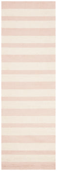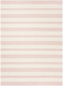 The delicate beauty of this rug is highlighted by its charming pink and ivory hues, seamlessly incorporated into a sophisticated striped pattern. This design offers a contemporary take on classic style, making it a versatile addition to any interior decor theme.