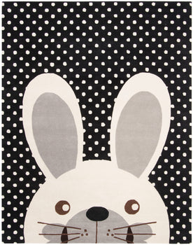 Featuring a charming pattern with an adorable bunny design set against a spotted background, this rug encapsulates a whimsical Kids style that is perfect for a nursery, playroom, or any space where children gather. The soothing ivory tones of the bunny's large, floppy ears create a gentle contrast, ensuring this piece not only adds warmth but also serves as an engaging visual focal point.