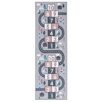 Boasting a delightful grey and pink color palette, the rug showcases a playful road and number pattern that not only adds a touch of whimsy to the room but also encourages learning and interactive play. With its slip-resistant qualities, it provides a secure play surface to protect little ones during their adventures.