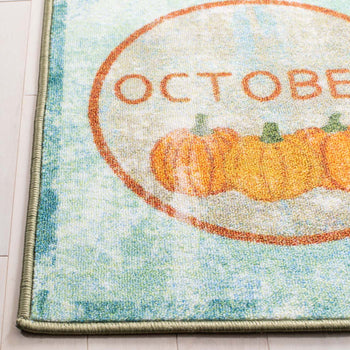 Introducing our charming 5' X 5' Round Kids Style Area Rug, a playful and practical addition to any child's space. Crafted in Turkey with the utmost care, this rug features a blend of vibrant green and blue hues that will brighten up the room and spark imagination. Each section of the round rug represents a different month of the year with a unique and appealing icon, adding an educational twist to its design.