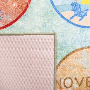 This delightful round area rug is an excellent choice for nurseries, playrooms, or classrooms, combining educational elements with functional style. Its easy-to-clean nature and engaging pattern make it a smart and stylish choice for young learners and parents alike. Bring a touch of whimsy and education to your child's environment with our colorful and kid-friendly round area rug!