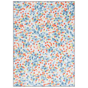 The power-loomed construction ensures a resilience that stands up to the playful antics of children, while the low pile height of 1/4" makes for easy cleaning and maintenance. Our rug invites little adventurers to step onto a canvas of ivory, sprinkled with a delightful array of blue and pops of cheerful colors.