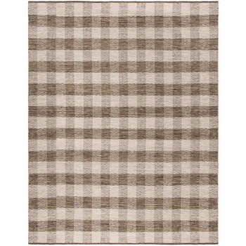 With a sophisticated palette of light grey and brown, this rug exudes a serene and welcoming vibe that complements any decor. The design features a harmonious blend of geometric stripes and asymmetric patterns, adding an understated visual intrigue that captivates and delights.