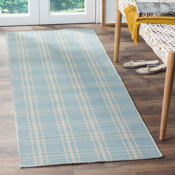 - Color Palette: Soft light blue forms the base of this charming runner, accented by subtle yellow stripes that add a warm and inviting touch to the design. The blend of these colors creates an airy, serene ambiance that's both elegant and uplifting.