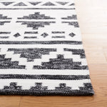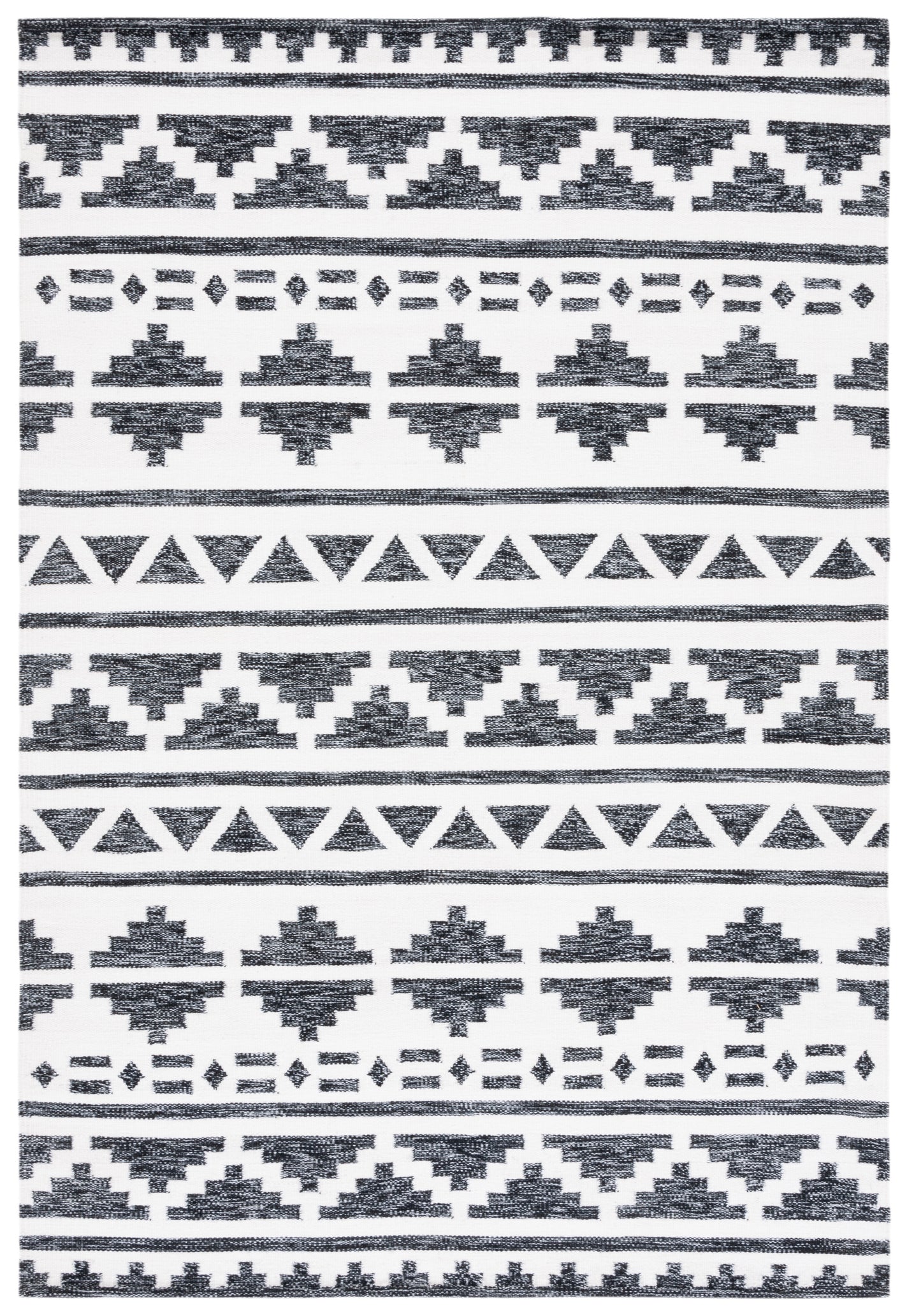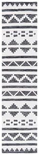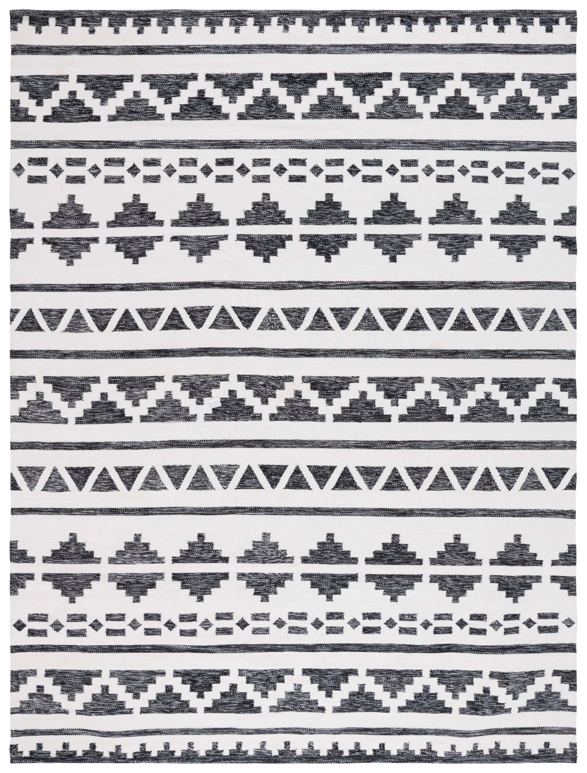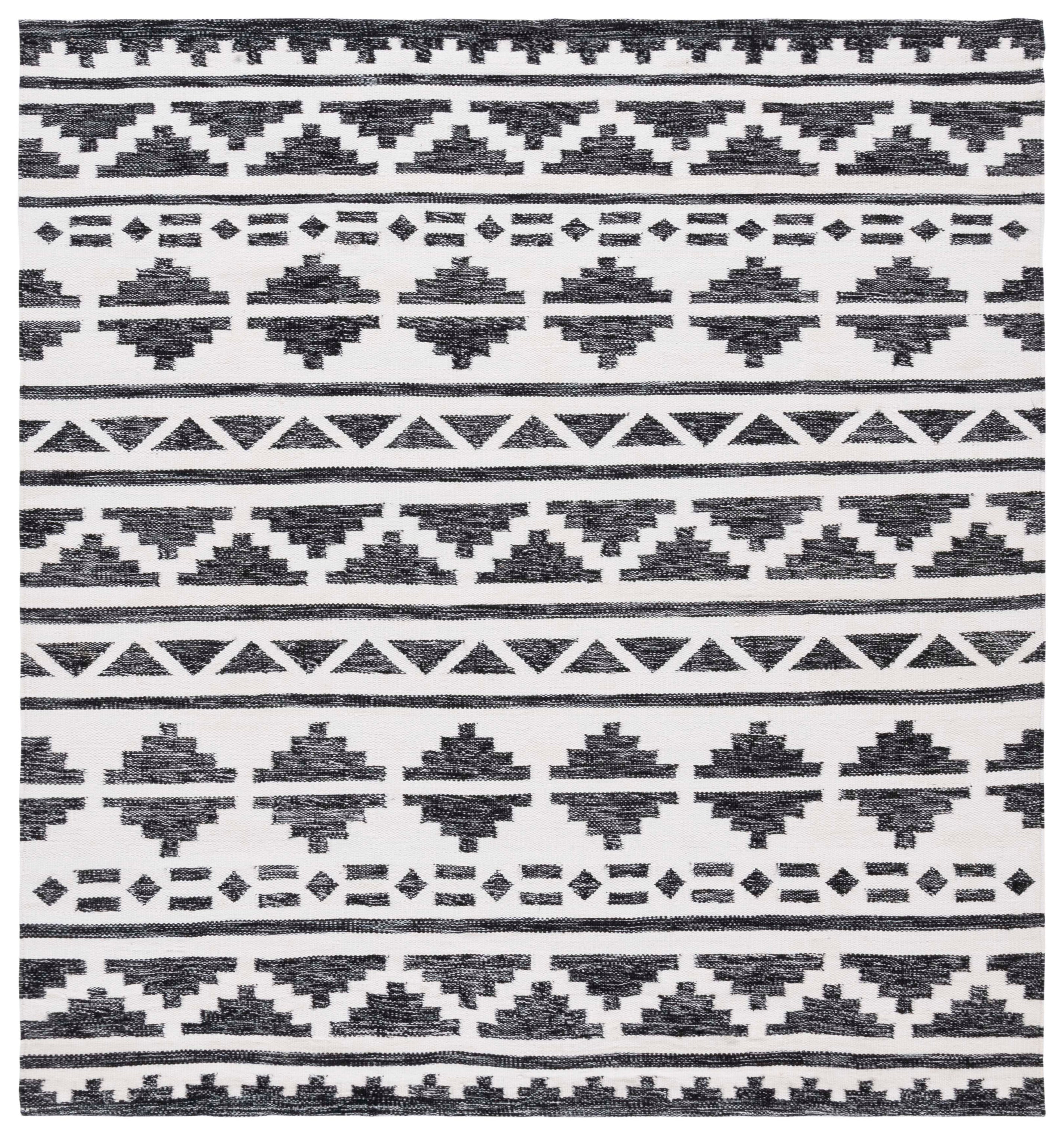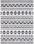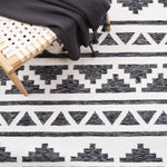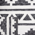 The rug's pattern, as portrayed in the image, features a striking black and ivory color palette that brings a touch of sophistication and versatility to your decor. The beautiful design showcases an array of traditional geometric motifs and tribal-inspired patterns, promising to make a bold statement in any modern or contemporary setting.