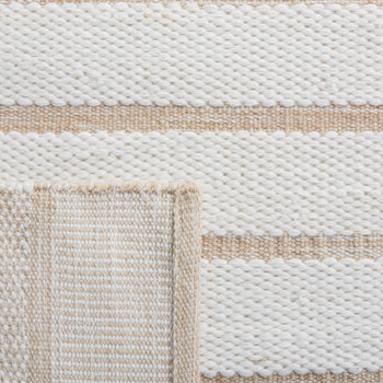 The IVORY / BEIGE hues of this rug create a serene backdrop that complements any interior design scheme. Its minimalist geometric pattern, as depicted in the provided image, features a harmonious arrangement of clean lines and abstract rectangular forms, giving off a modern and yet versatile look. The nuanced interplay of ivory and beige echoes a feeling of warmth and refined coziness that will enhance any room's atmosphere.