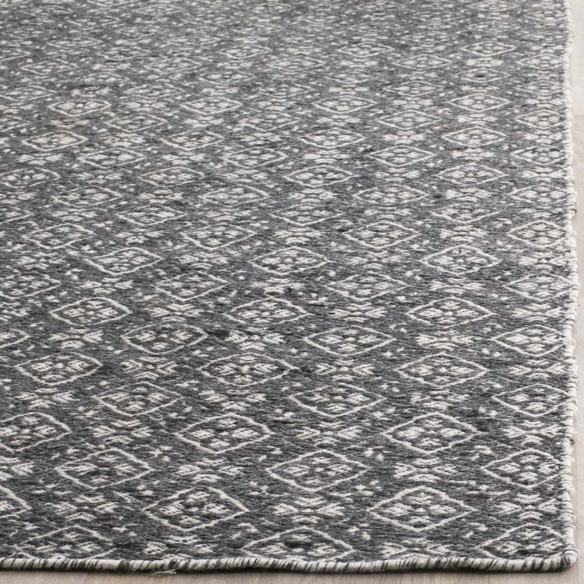 Elevate your living space with the understated elegance of our hand-woven wool area rug, sized at a convenient 4' x 6'. The harmonious palette of ivory and charcoal exudes a sophisticated charm that seamlessly complements any decor. Crafted by skilled artisans in India, this small rectangle rug boasts a timeless pattern featuring intricate geometric motifs that convey both a sense of tradition and contemporary style.