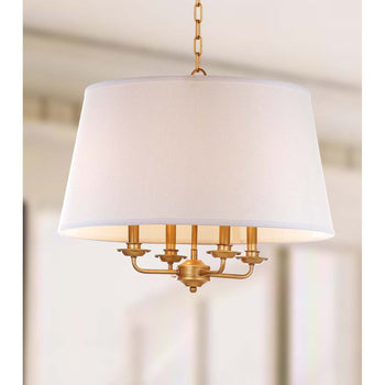 Designed to recall the Park Avenue home of NYC's most famous doyenne, this gold 31 inch diameter adjustable chandelier is the jewel of any space. Its two chic tiers of ambient lighting bring glamour to the living room, bedroom or stylish home office.