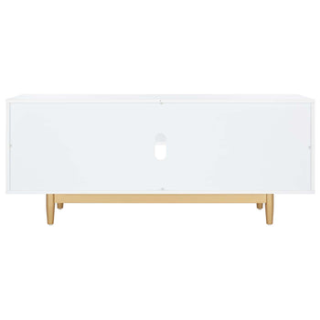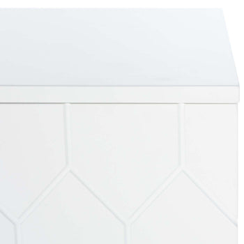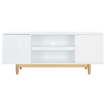 An absolute showstopper in any entertainment space, this Kit Media Stand is a sophisticated standout. The etched hexagon honeycomb pattern on Kit's two doors beautifully enlivens its clean white frame, while Mid-Century inspired legs make Kit a glamorous style icon. Two open shelves provide perfect storage for consoles or devices.