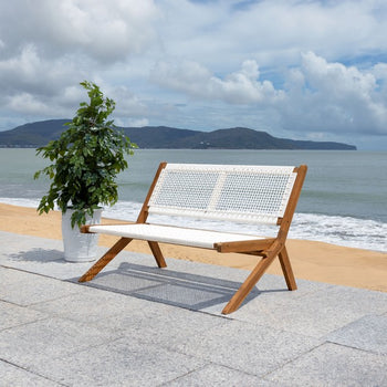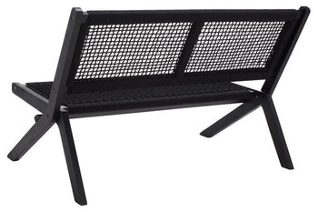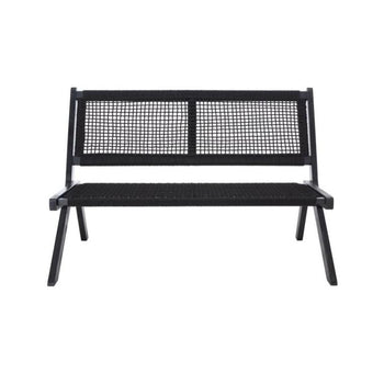 Bring contemporary-chic interior style to the great outdoors with this stunning Kobina Bench. Kobina's finely sculpted black wood frame and woven matching black rope details are at the epitome of modern style, and designers love the portable versatility of its folding construction.