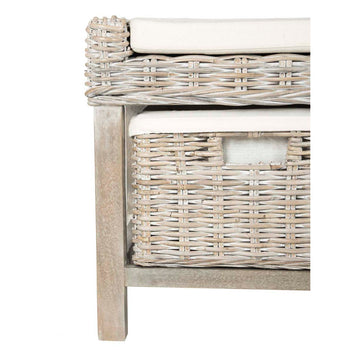 An antique bench found in the foyer of a beloved bed and breakfast on the coast of Maine was the inspiration for this whitewashed coffee table. Its rustic modern style is enhanced by its functional storage baskets, creating an instant classic.