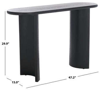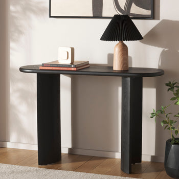 Introducing the Koka Console Table in a stylish and sleek black finish. Crafted from robust and sturdy wood, this sophisticated piece will lend a touch of elegance to your home. The Koka Console Table offers the ideal solution for those seeking a practical and stylish way to enhance their space. The black color delivers a timeless look that is easy to mix and match with your current home decor. Our attention to detail ensures it will become an indispensable part of your home. Ideal for your hallway, living room, dining room or any space where you need a touch of classic style and functionality. Imagine how beautiful your cherished photographs, potted plants or vintage lamp will look perched on our Koka Console Table. Add this indispensable piece to your furniture collection today, we're confident you'll appreciate its blend of practicality and elegance.
