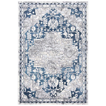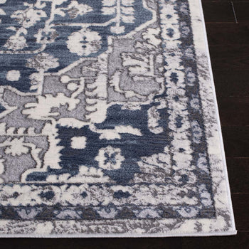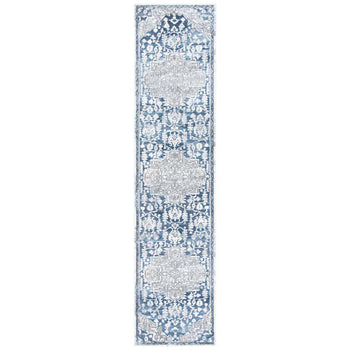 Embrace the fusion of artistry and practicality with our Transitional Navy/Grey Runner Rug?a piece that is as enduring as it is beautiful.