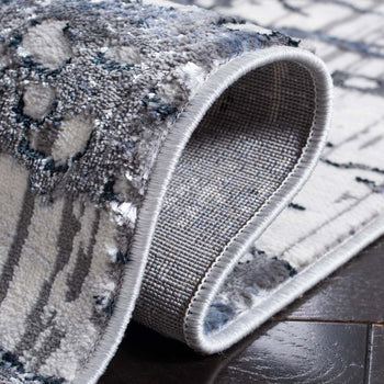 The contemporary styling of this rug features an abstract, painterly pattern that artfully blends shades of grey and soothing blues. Its aesthetic pays homage to modern art, making it an exquisite centerpiece for your decor. The meticulously power-loomed construction ensures precision and durability, guaranteeing a beautiful look that lasts.