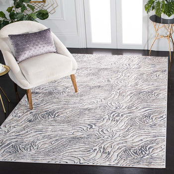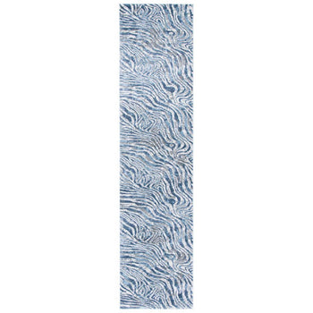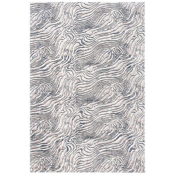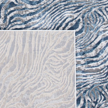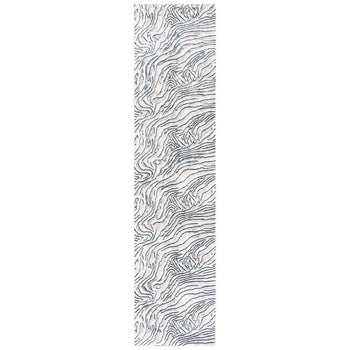 The rug displays an alluring pattern that mimics natural textures, creating a mesmerizing effect with its flowing lines and organic shapes. The cool blue and grey palette infuses your hallway or living area with a serene, modern aesthetic while offering versatility to blend seamlessly with various decors.