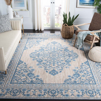 The rug's design features a central medallion surrounded by intricate florals and an ornate border, reminiscent of classic motifs yet imbued with a contemporary sensibility that suits a range of interior decors. Whether placed in a living room, dining area, or foyer, this rug will become an exquisite centerpiece that captures the eye and soul.