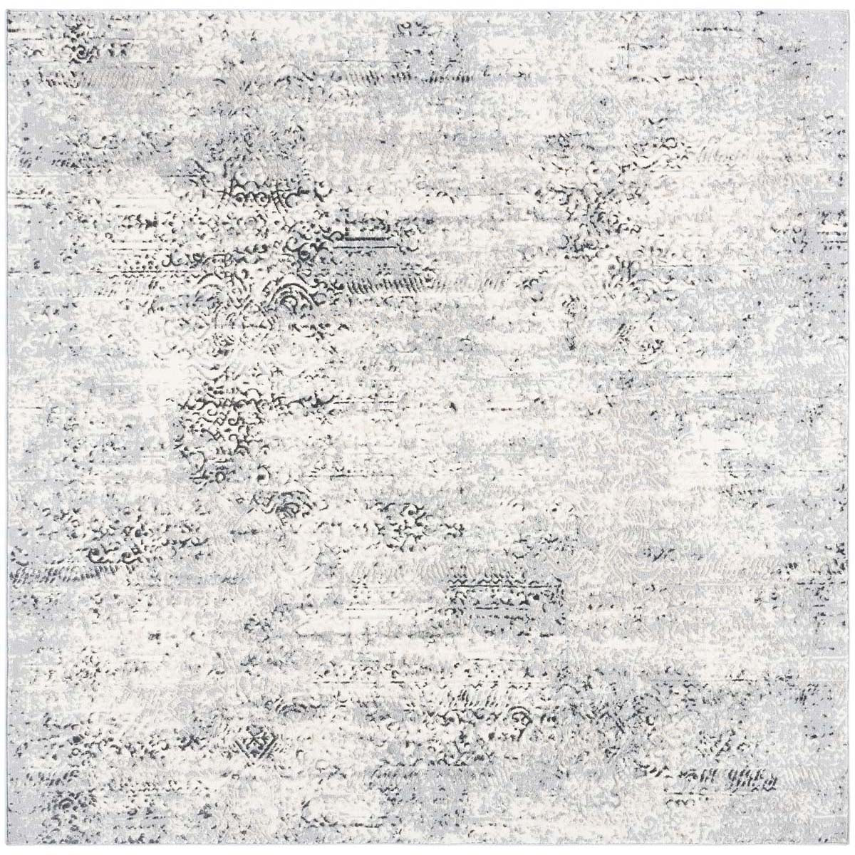 The color palette of ivory and grey channels a minimalist elegance that complements a variety of decor styles. The subtle yet captivating pattern displayed on the rug features an abstract design that is both versatile and visually interesting, enhancing the surroundings without overpowering them.