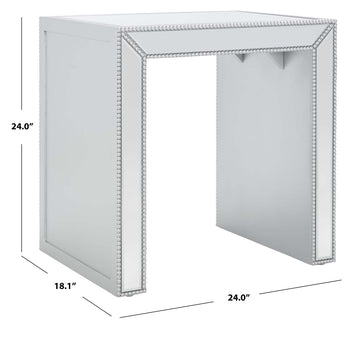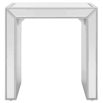 Revive your Decor with the unapologetic glamour of this decadently styled Laken Accent Table. Laken's clean-lined silver frame and mirrored accents shine decadently in any room, and its studded accents further elevate its lavish look.