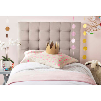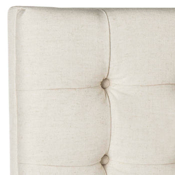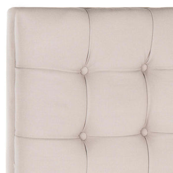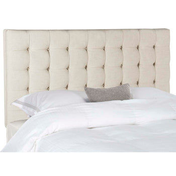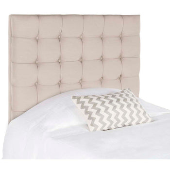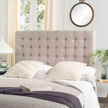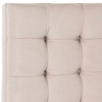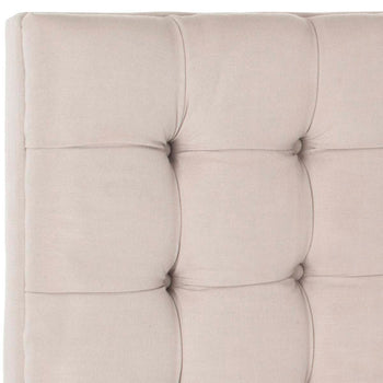 The luxurious Lamar headboard is exquisitely upholstered in greige velvet blending cotton and linen for luster and enduring beauty. Glamorous and plush, this button tufted headboard commands center stage in traditional and transitional bedrooms.