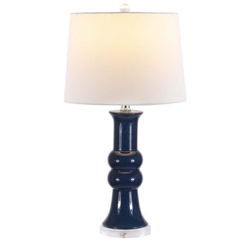 Good taste is always in style, and this Lamber Table Lamp abounds with refined sophistication. Lamber's updated hourglass silhouette in bold navy ceramic emanate a decadent sense of motion reminiscent of modern art, and its crystal clear acrylic base gives an airy, floating look. Sold in sets of two.
