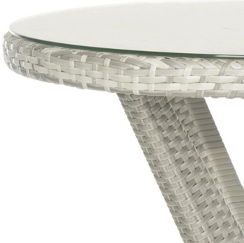So good looking you will want to use it indoors, the grey Langer round dining table by Safavieh combines the woven look of old fashioned wicker with state of the art weather resistance. This table is crafted of PE wicker and aluminum for easy care.