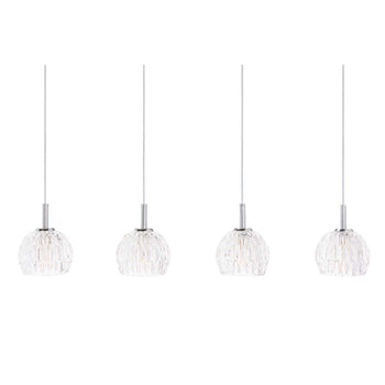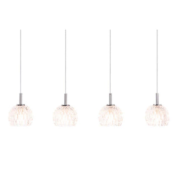 Inspired by the timeless beauty of diamonds, this exquisite contemporary metal pendant light is a captivating focal point in any dining room. Designed with four hanging crystal lights, its polished chrome finish beautifully reflects its dazzling gleam.