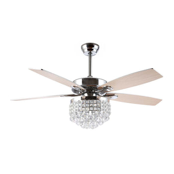 Crystal lights dangle decadently through a chrome honeycomb lattice in this Lanzer Ceiling Light Fan, casting a spellbinding shine on any decor. Lanzer's tiered diamond inspired crystals give an additional sense of depth, and white maple blades bring a touch of farmhouse charm to its ultra glamorous design.