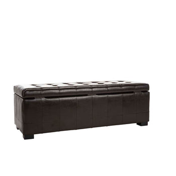 A modern adaptation of the old fashioned steamer trunk, the beautifully upholstered Large Manhattan storage bench is perfect for dressing, lounging and stowing everything from blankets to sweaters. With brown quilted bicast leather and button tufts on its hinged top, Manhattan stands on chic black beech wood legs 'sa great looking organization tool.