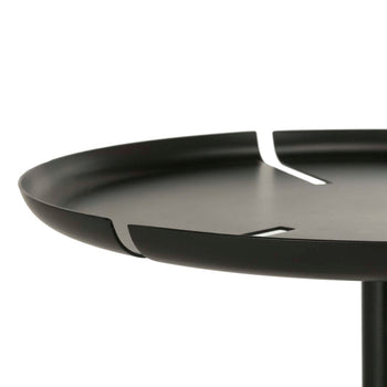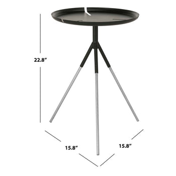 Petite and posh, this Lark Side Table brings just the right amount of style to the living room. Lark's black matte metal top is itself a dramatic display, while the nickel finish on its tripod legs adds a polished, luxurious shine.