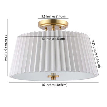 Give your Decor a touch of tradition with this Larlon Flush Mount. Brass gold accents add a hint of modern glamour to Larlon's pleated white fabric shade, making it ideal for the classic-contemporary interior.