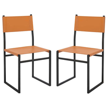 Sleek minimalism is beautifully restyled for today's cozy interiors in this Layne Dining Chair. Environmentally sustainable regenerated leather create a comfortable seat and back that seamlessly accent any room's color scheme, and an open black metal base showcases Layne's modern look. Sold in sets of two.