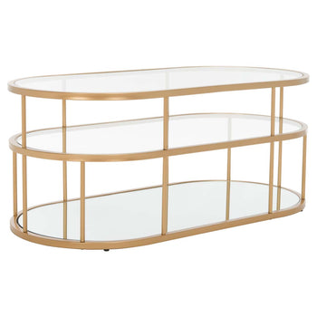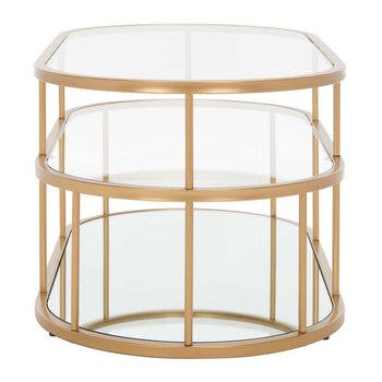 Bring the glamour of the Roaring Twenties to the 2020s with this lavishly styled Layta Coffee Table. Adding a touch of Art Deco decadence to any modern interior, Layta's two glass tiers and mirrored bottom shelf reflect unbridled chic, and a glamorous gold finish highlights its high-fashion appeal.