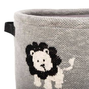Keep the kid's bedroom or playroom tidy and decorated in kiddie style with the Leo Storage Basket. It's adorable, functional and ready to help keep the clutter under control. The Leo Storage Basket is great for boys or girls'srooms and is made of pure cotton and colored in dark grey for an added touch of fashionable color.
