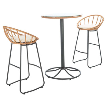 Cheers to memories made and memories yet to come! This Lersa 3 Piece Lounger Set is the perfect setting for private gatherings for two under the stars with its revitalized retro bar seats in natural woven rattan and a heightened accent table ideal for popping champagne and clinking glasses.