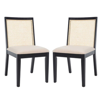 Bring A Touch Of Modern Coastal Chic To Your Decor With This Lovely Levy Dining Chair. Levy's Jet Black Frame Perfectly Highlights Its Natural Rattan Back, While A Plush White Fabric Seat Ensures Lasting Comfort. Sold In Sets Of Two.