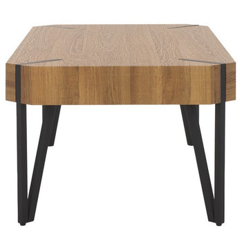 Add instant character and style to the living room with this rustic midcentury wood top coffee table. Inspired by an industrial chic caf? in Paris'sMarais district, its modern canyon grey finish and black metal hairpin legs make it a designer favorite.