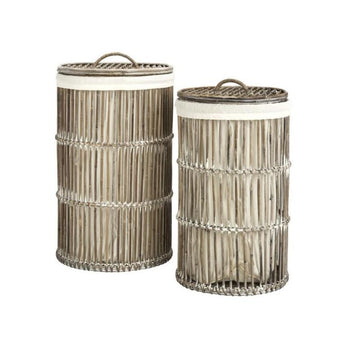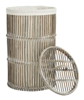 Versatile and stylish, this set of two rattan storage hampers with liner is an investment. Crafted with kubu for a rich texture, its white wash finish refreshes the laundry room, pantry or playroom while things stay hidden under its handy removable lid.
