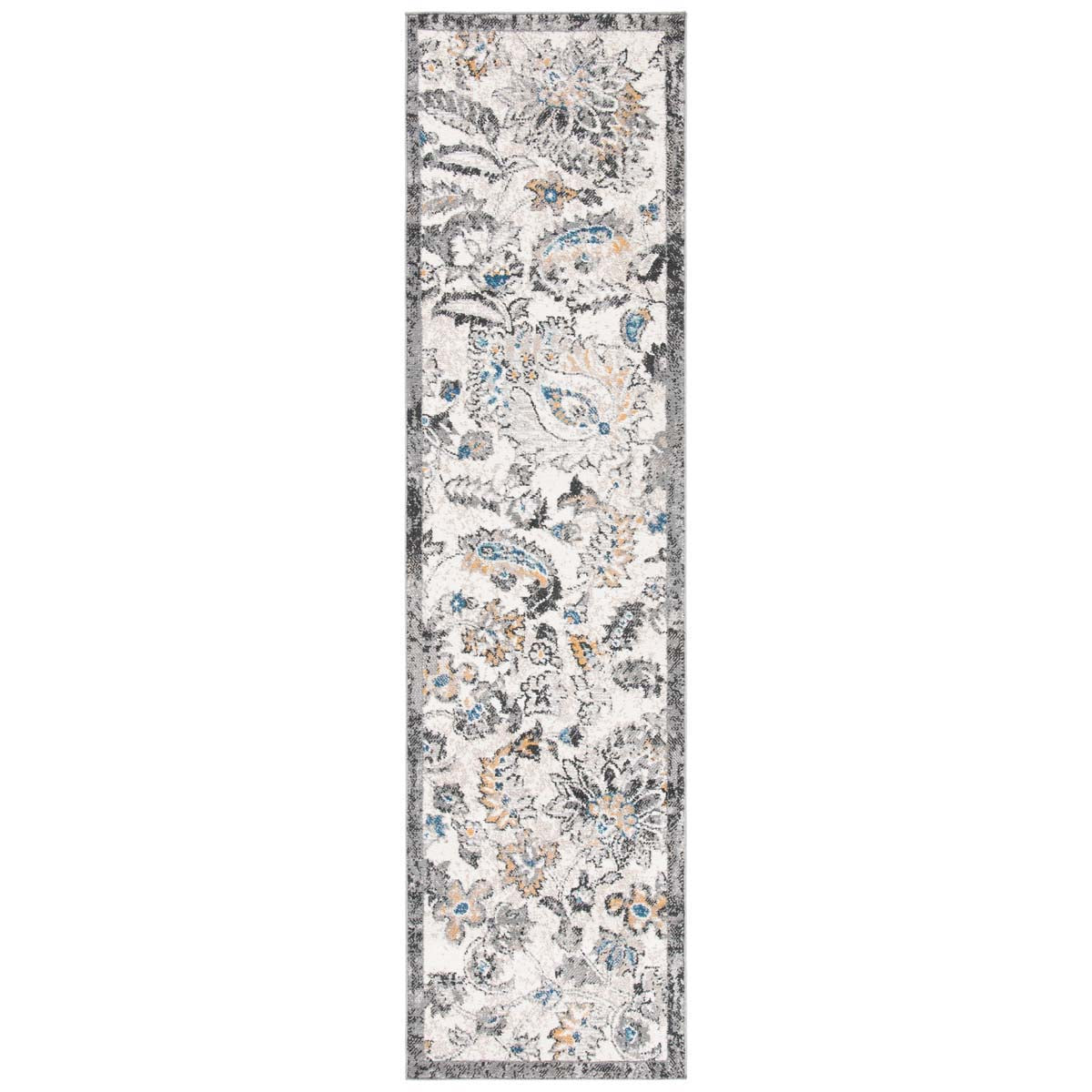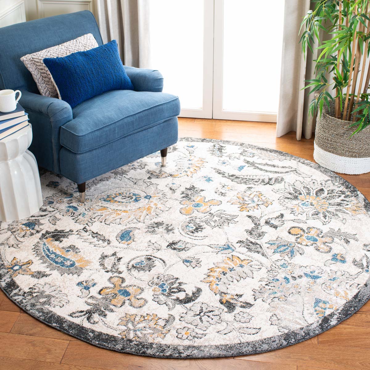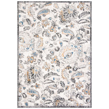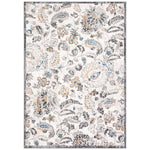 The rug's pattern, visible in the image, features a lush display of country and floral motifs that bring a touch of nature indoors. The intricate design showcases a harmonious blend of dark grey and ivory hues, accented by subtle touches of color that add visual interest without overwhelming your decor. This timeless piece will seamlessly integrate into a variety of interior styles, from classic to contemporary.