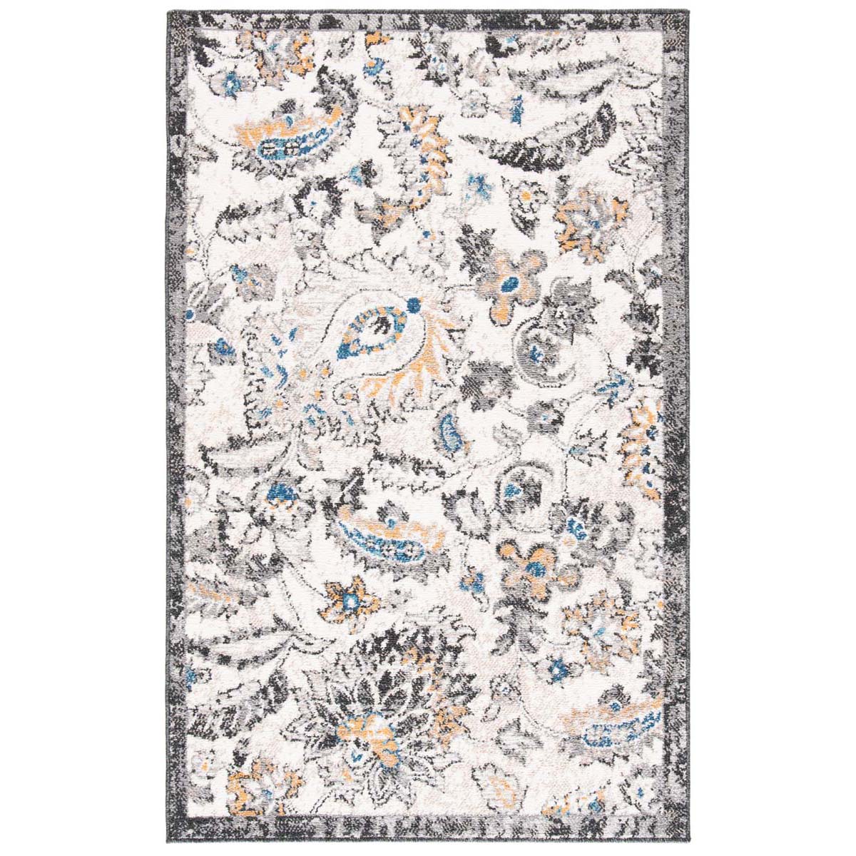 Elevate your living space with the exquisite charm and elegant design of our dark grey and ivory area rug. Expertly crafted in Turkey using a power-loomed technique, this polyester rug boasts a medium rectangle shape, measuring a versatile 5'-3" X 7'-7". The pile height of a plush 1/4" provides a soft underfoot feel, while the OEKO-TEX certification ensures it's free from harmful substances, making it a safe and eco-friendly choice for your home.