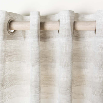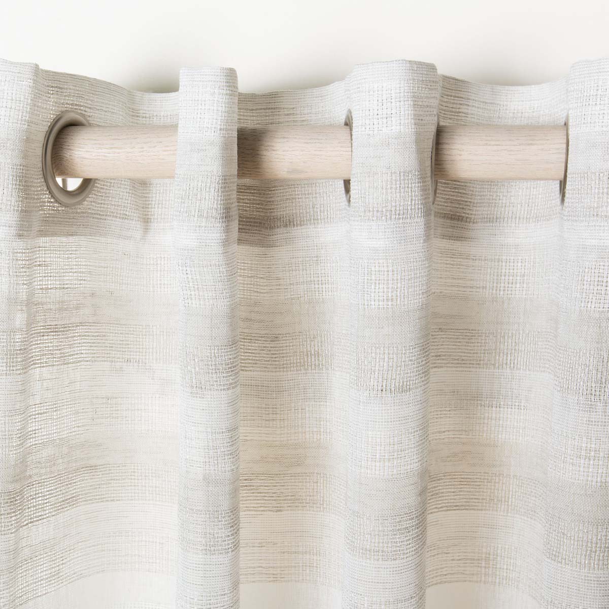 Transform any room into a calming modern retreat with these deluxe semi sheer drapes. Designed with polyester and soft layers of horizontal waves, their beautiful beige tones complement any Decor. Eight sturdy grommet rings per panel ensure easy hanging.