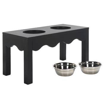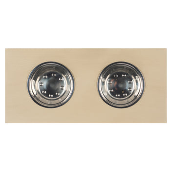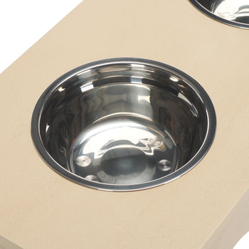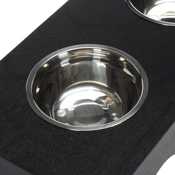 Elevate your pets dining experience with our stylish and functional pet furniture item. Crafted from wood and stainless steel, this elegant piece blends seamlessly into any home decor. Its robust construction ensures a stable and secure setting for your pet's food and water. The stainless-steel bowls are easy to clean, making mealtime a breeze. Designed with both form and function in mind, this pet furniture item not only enhances your pet's comfort but also adds a touch of sophistication to your home. Give your furry friend the dining setup they deserve.