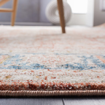 Each design flourish is accentuated on a field of rust, surrounded by a harmonious border that introduces a delightful contrast while maintaining the overall cohesion of the design. Crafted with a resilient blend of 75% Polyester and 25% Viscose, the fabric composition not only promises durability but also offers a soft touch for underfoot comfort.